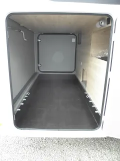 - Große Heckgarage: rechte Garagentüre mit Dreh-/Spannverschluss, Heckabsenkung (150 kg Flächenlast), Anti-Rutsch-Oberfläche, beheizt, Zurrleisten, beleuchtet, 1x 230 V Steckdose